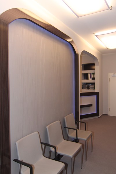 Neugestaltung der vorhandenen Praxisräume in moderner großzügiger Optik.
